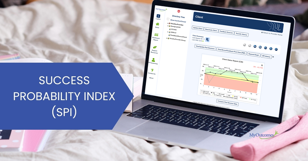 The Success Probability Index (SPI) is a dynamic, session-by-session prediction tool that analyzes current and past ORS and SRS scores to estimate the client’s likelihood of a successful. It was developed by a team of researchers led by Dr. Scott D. Miller.